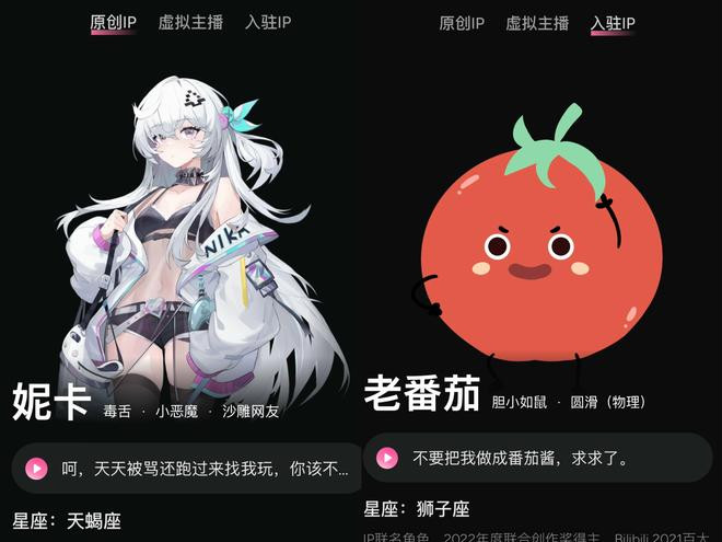 目前,逗逗AI的用户以18到25岁的用户为主,男性比例大概有70%。刘斌新介绍,随着IP角色的增加,女性用户的比例也在上升。官方提供的IP选择包含具有二次元色彩的原创角色,还有B站上受欢迎的虚拟主播和UP主。